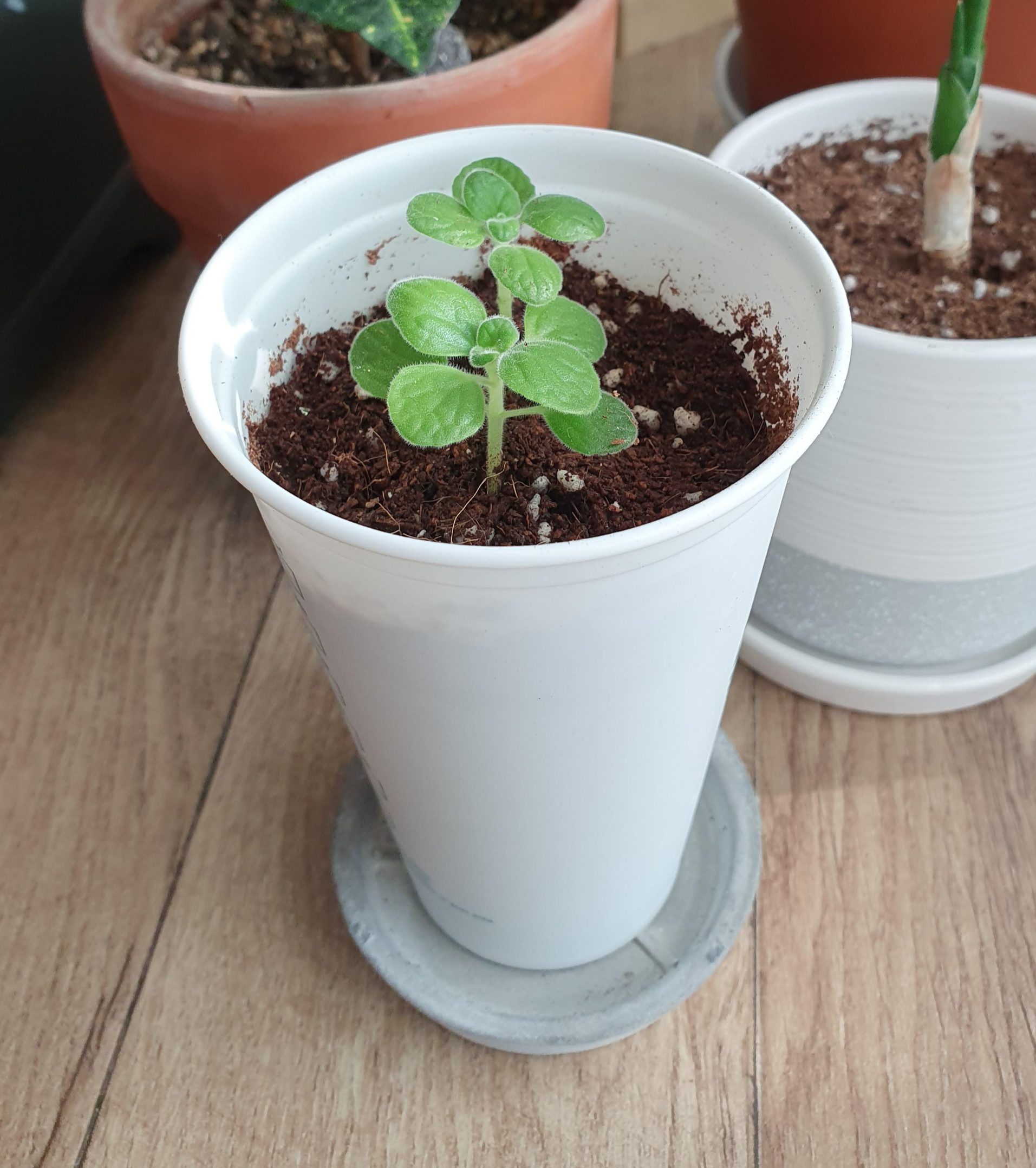 처음에 받아온 여러 개의 장미허브 줄기들 중 하나는 좀 있어 보이게 키워보고자 화분을 엄선하여 심어줬다.