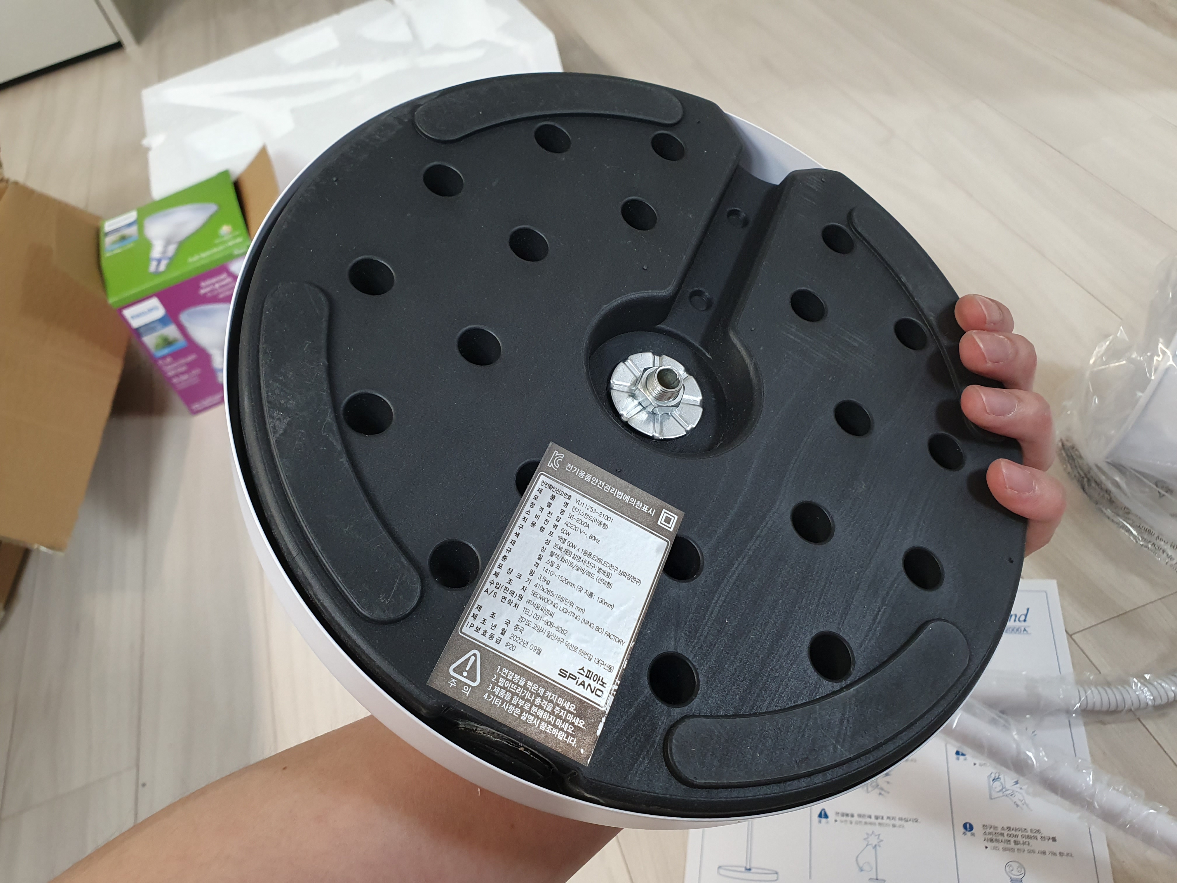 밑판은 묵직한 편이다. 바벨 원판을 드는 느낌을 받았다. 스탠드의 무게중심을 잘 잡아줄 것 같다.
