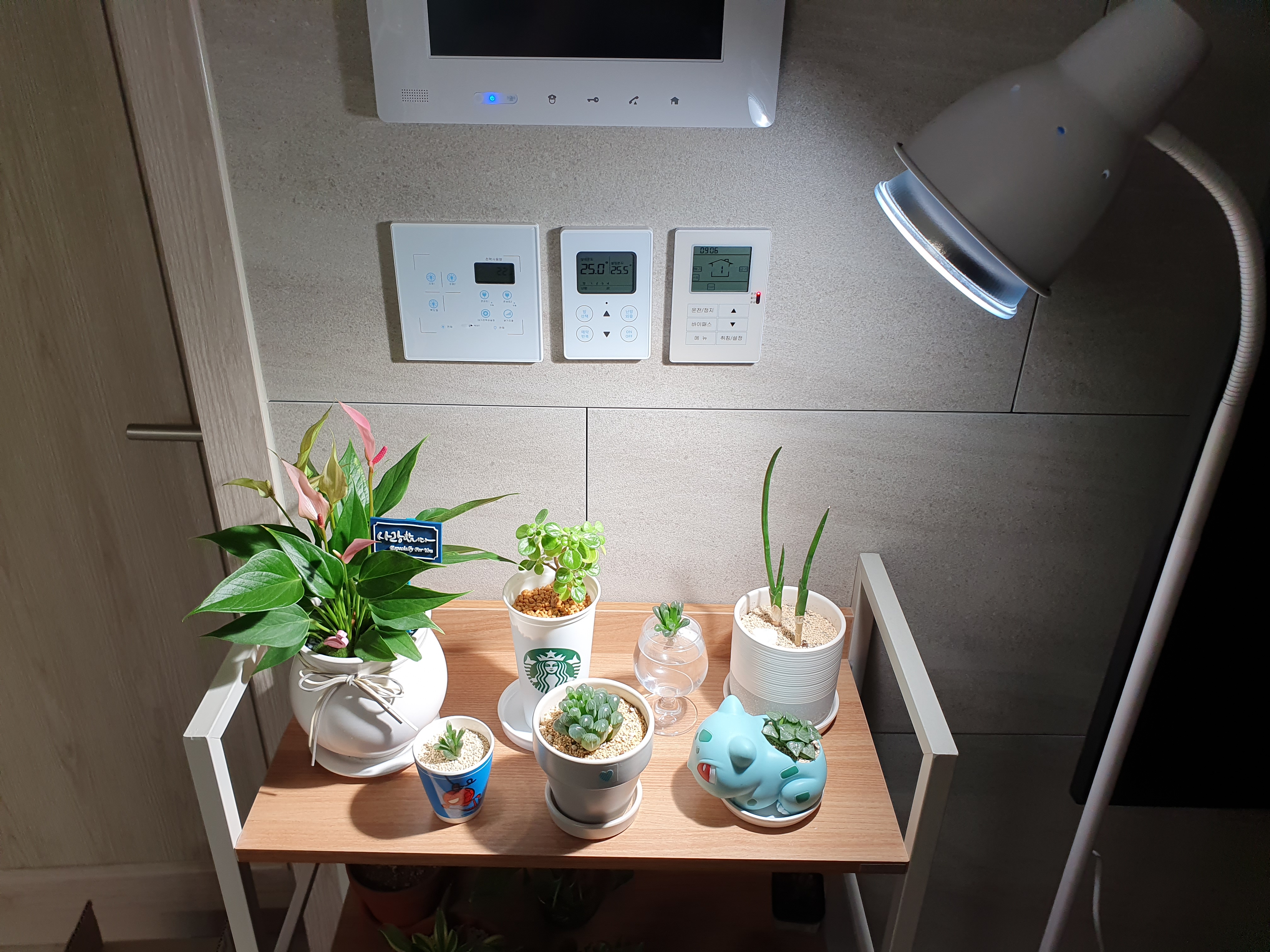 애매하게 햇빛을 받을 바에는 이렇게 식물등을 설치해서 키우는 것이 도움이 된다.