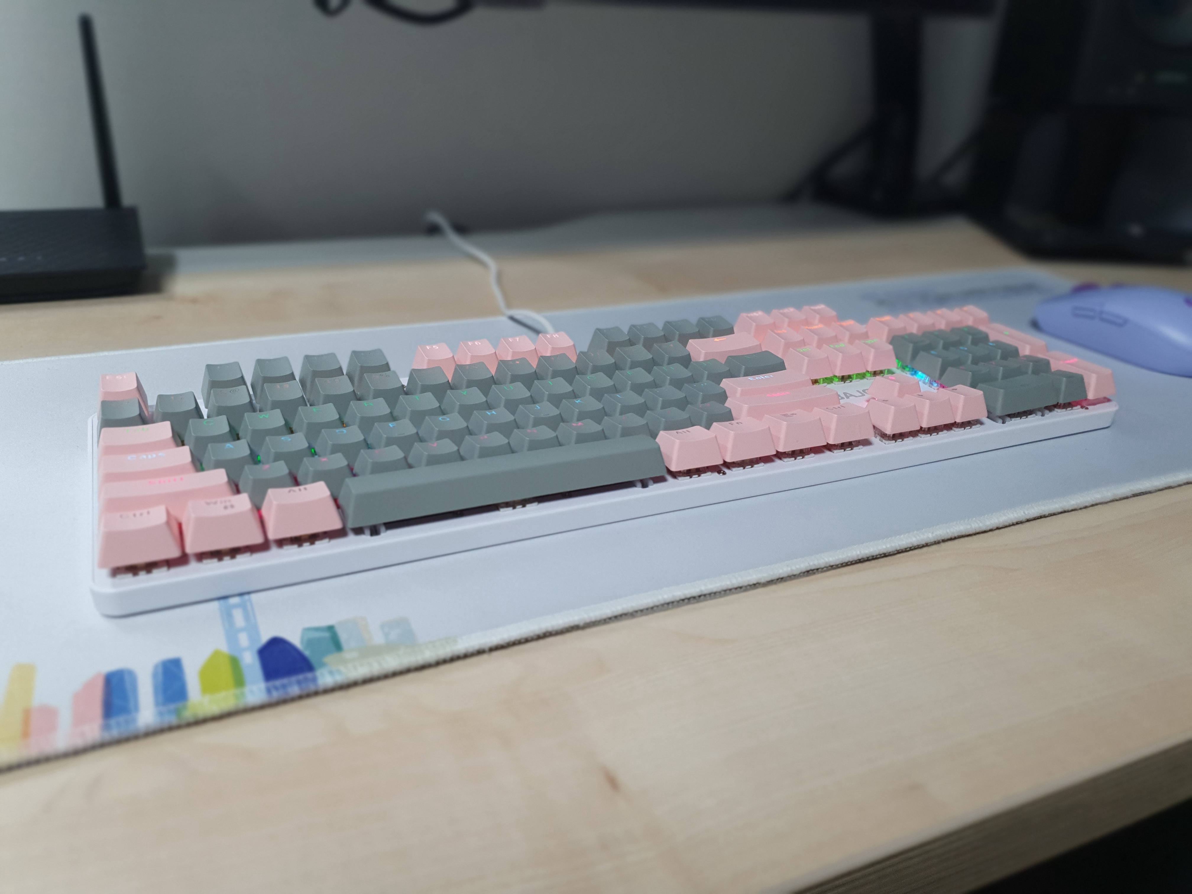 그레이/핑크로 탈바꿈된 키보드. 기존보다 개성을 강화시켜 주었다.