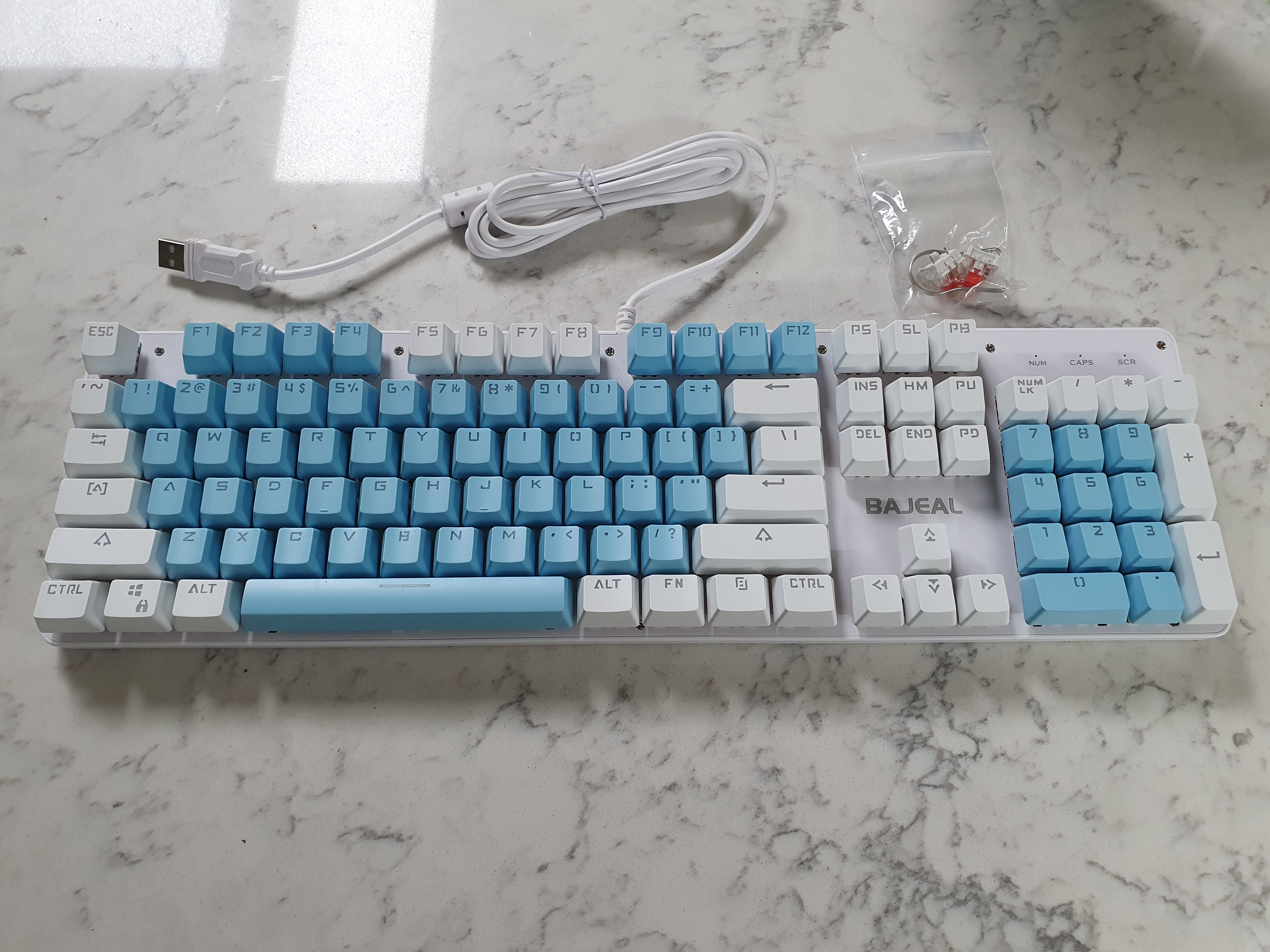 30만원짜리 키보드에도 큰 감흥을 못 느꼈던 터라, 입문용 기계식 키보드 정도면 괜찮겠다 싶었다. 누군가의 추천글을 보고 알리에서 Bajeal 기계식 키보드를 샀다.