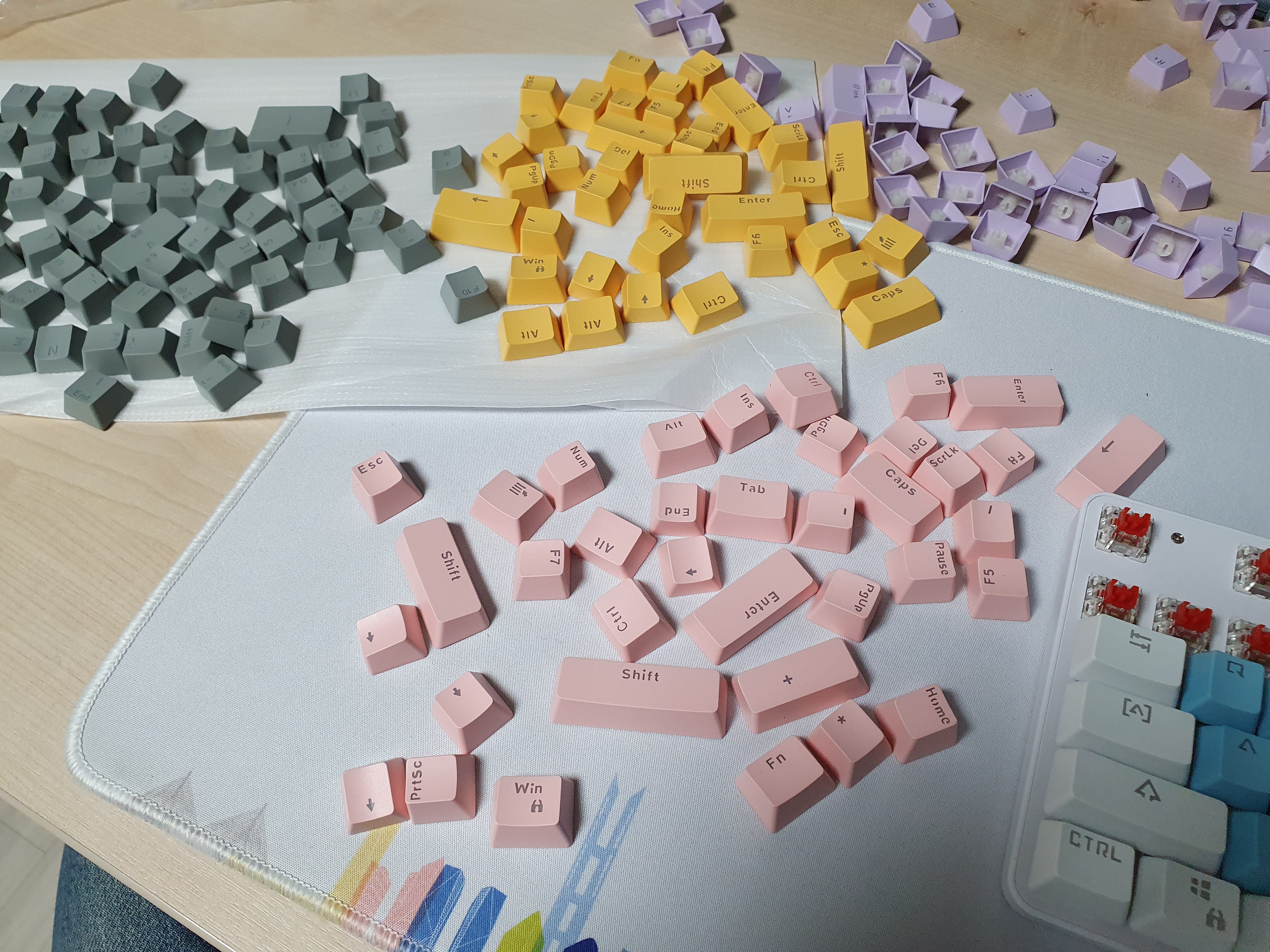 이렇게 기계식 키보드의 키캡을 바꾸는 걸 키캡놀이라고도 표현하더만 그 이유를 알 것 같다. 장난감을 가지고 노는 느낌이다. 키보드의 색감이 질린다 싶으면 또 다른 컬러로 바꾸면 된다.