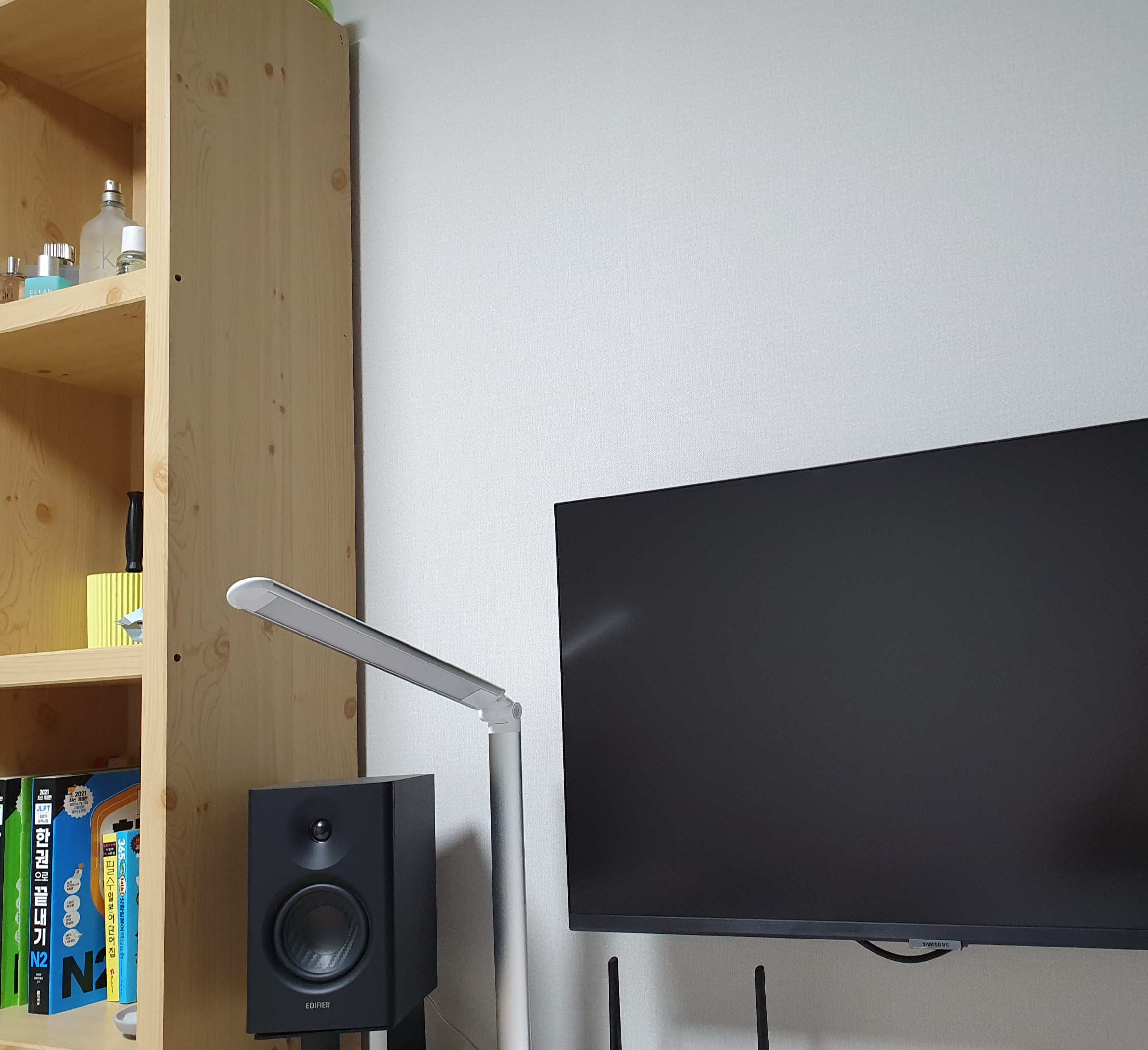 책상 주변에 설치한다면 모니터 위쪽 벽에 설치하기도 하고, 뒤쪽에 설치하기도 하고, 측면에 설치하기도 한다.